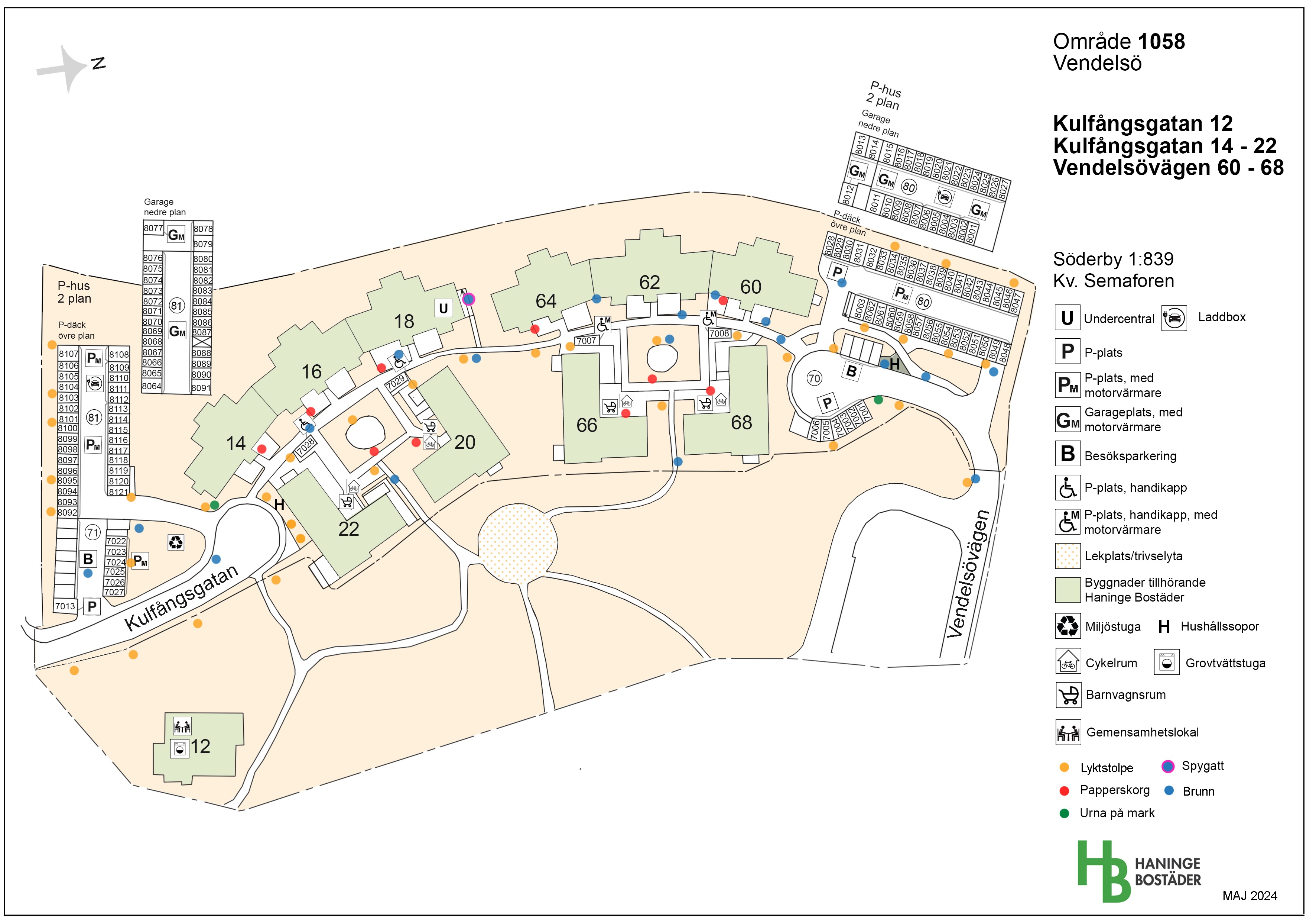 Områdeskarta med parkeringsnummer (Klicka på bilden för större bild)